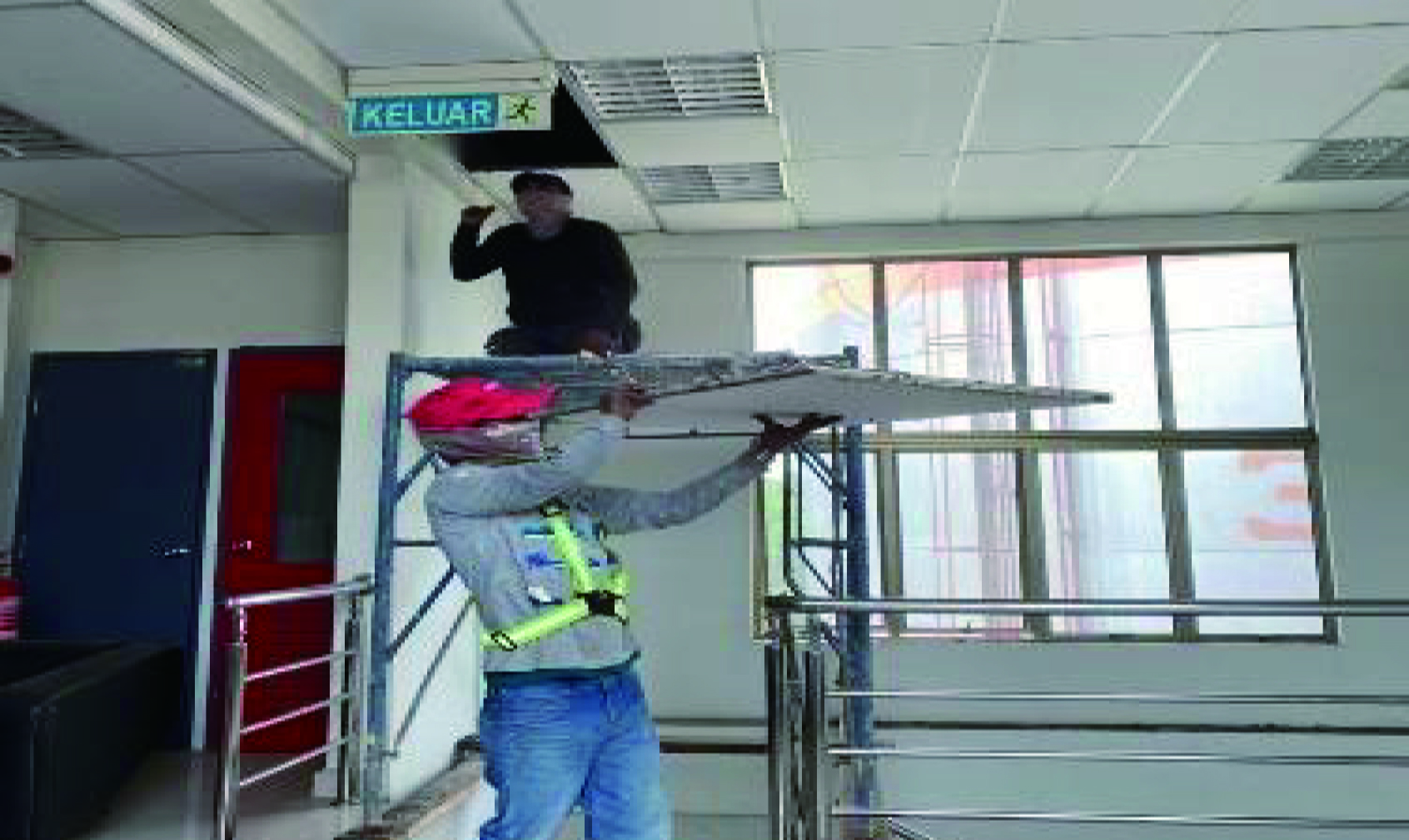 Kerja-kerja membaiki bumbung dan pembersihan siling pejabat (Bird Control Works)